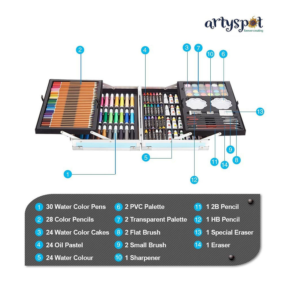 145 Piece Compact Kids Art Case. Painting, drawing, Color Pencils